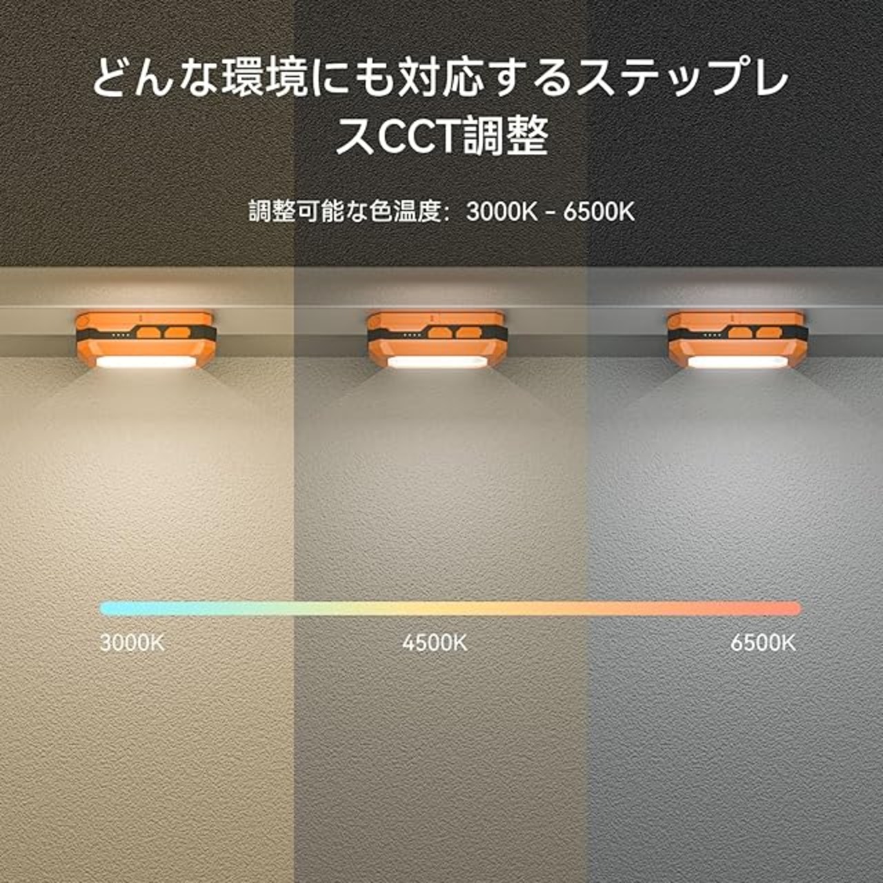 無段階色温度調整機能:3000K~6500Kの色温度調整に対応。暖かみのある光から白色光まで自由に設定でき、あらゆる作業環境に適応します。
