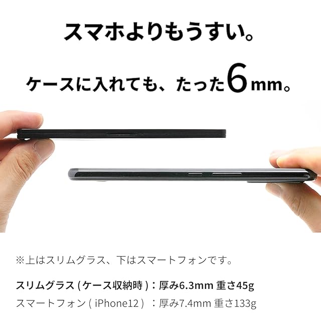 スマホよりも薄い超薄型:メガネをケースに入れても厚みはわずか6mm。驚くほどコンパクトでバッグやポケットに入れてもかさばりません
