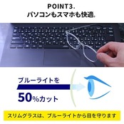 目にやさしいブルーライトカットレンズ:スマホやパソコンが発するブルーライトを50%カット。ブルーライトカット効果で目の負担を軽減します。