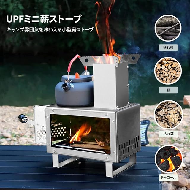 UPF 薪ストーブ 新昇級 1台2役 キャンプ 耐熱ガラス窓付き ミニ薪ストーブ ステンレス鋼 ロケットストーブ 煙突付き 小型 ソロストーブ 焚き火台 コンパクト アウトドア ストーブ BBQ 調理 暖炉 1-2人用 卓上薪ストーブ テント用 キャンプ用品 収納袋付き | primer