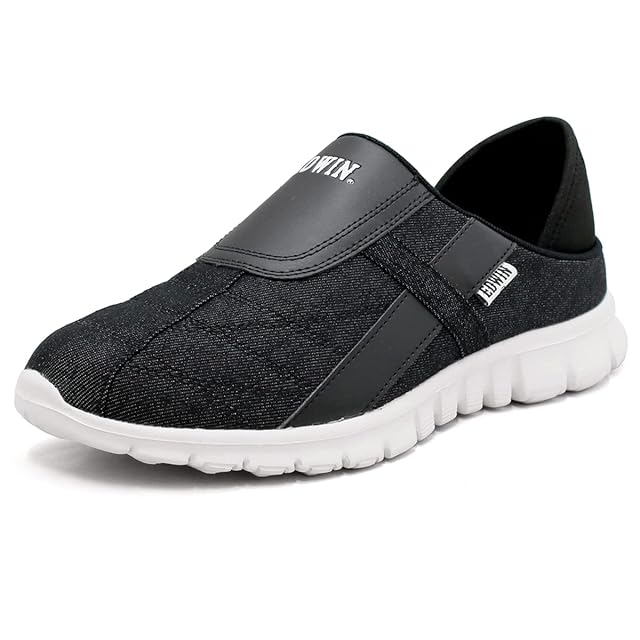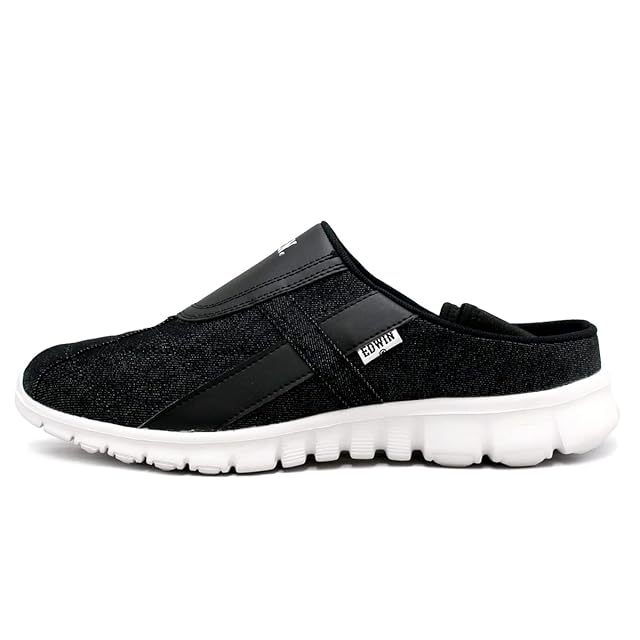 [エドウィン] スニーカー スリッポン メンズ かかとが踏める キックバック 超軽量 PU革レザー デニム サボスニーカー 3E 4E 色 EDW1471 BLACK 26.5cm