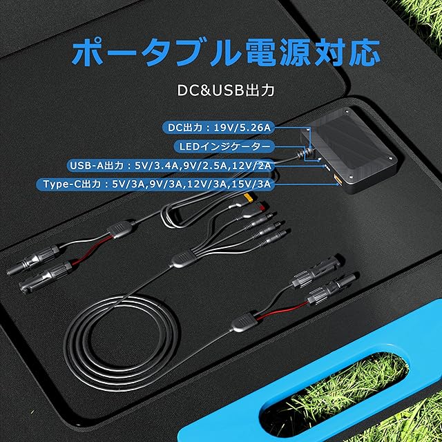 DOROEO ソーラーパネル 100W 太陽光パネル USB-C/USB-A/DC出力 超軽量 2.9KG 折り畳み式 ソーラーチャージャー スマホやタブレット充電可能 高変換効率 (100W 19V 5.26A) 単結晶 太陽光発電 省エネ ソーラー充電器 ポータブル電源対応 アウトドア 防災 非常時 節電対策