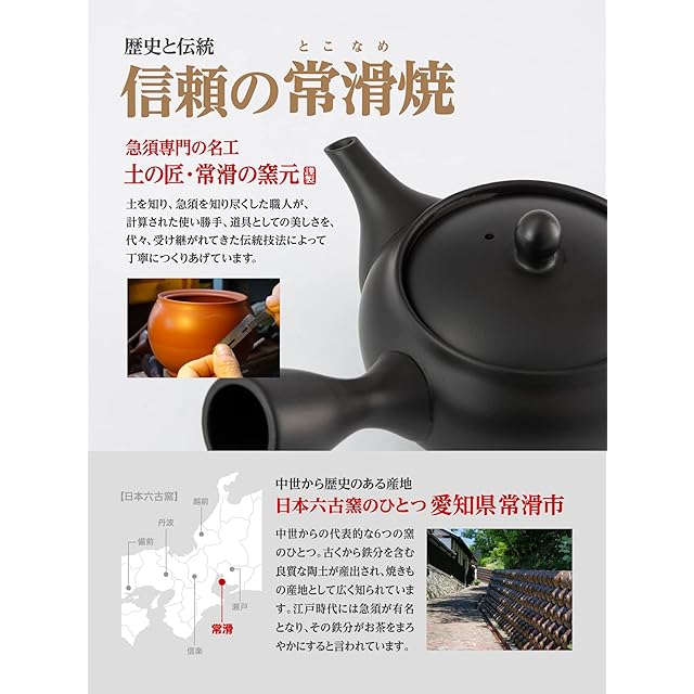 〈信頼の常滑焼〉日本製・"急須の産地で名高い"愛知県常滑市の〈急須専門の窯元〉謹製。土を知り、急須を知り尽くした職人が、計算された使い勝手・道具としての美しさを、伝統技法によって丁寧につくりあげています。