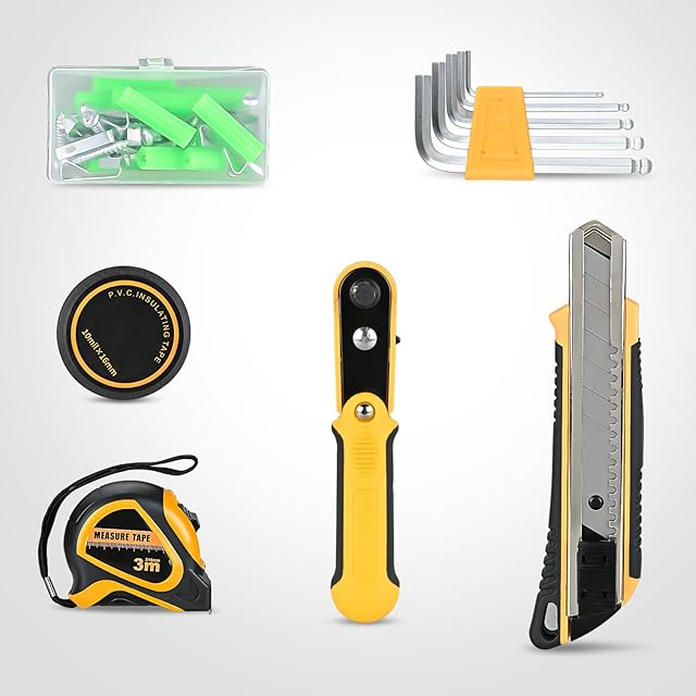 合理化された機能設計: さまざまな基本ツール、精密ドライバー、ハンマー、巻尺、ペンチなどの組み合わせ。 デュアル機能ミニラチェットレンチとレンチスリーブも付いています。