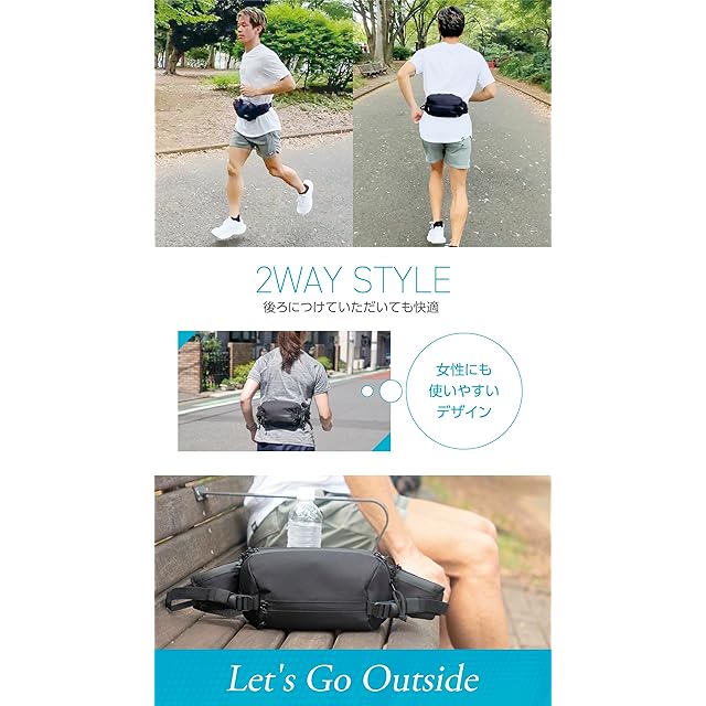 【ペットボトルを入れても揺れない】 500mlペットボトルがスッポリ入ります。 また、アジャスターベルトで身体にピタッとフィットするため、ランニング中でもポーチが揺れません。男女ともにお使いいただけるユニセックスデザインです。