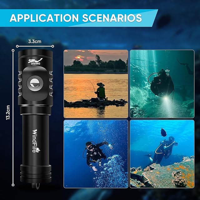 ✪ 【友好的なアフターサービス】ダイビング、水泳、釣り、洞窟探検、航海、キャンプ、トレッキング、シュノーケリングなどに最適なアクアラングです。WINDFIREアクアラング懐中電灯にはロッカーが付いており、持ち運びに便利です。これはあなたの心肺潜水部品の絶好の補充です。
