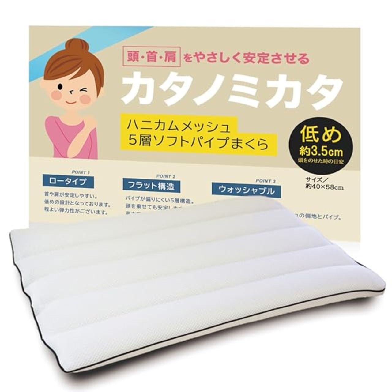 sunny days 枕 低め カタノミカタ 母の日 洗える パイプ まくら 夏 蒸れにくい 肩 頭 首 安定 人気 首が痛くならない フラット 通気性 ハニカム ピロー ストレートネック 仰向け 高さ調節