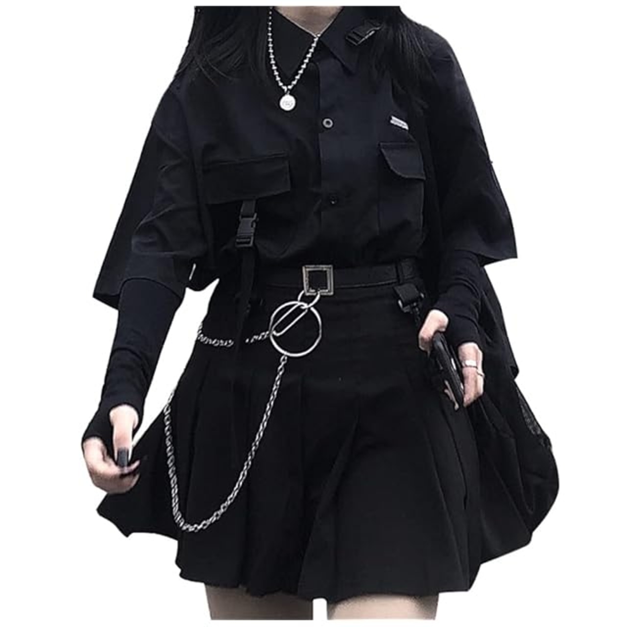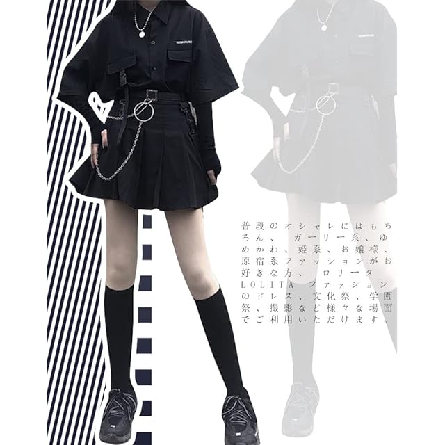 [SHUMING]セットアップ レディース 夏 上下セット 地雷系 ゆったり 量産型 夏服 半袖シャツ&プリーツスカート&ベルト カジュアル 韓国風 ストリート系 JK制服 原宿系(8黒) | primer