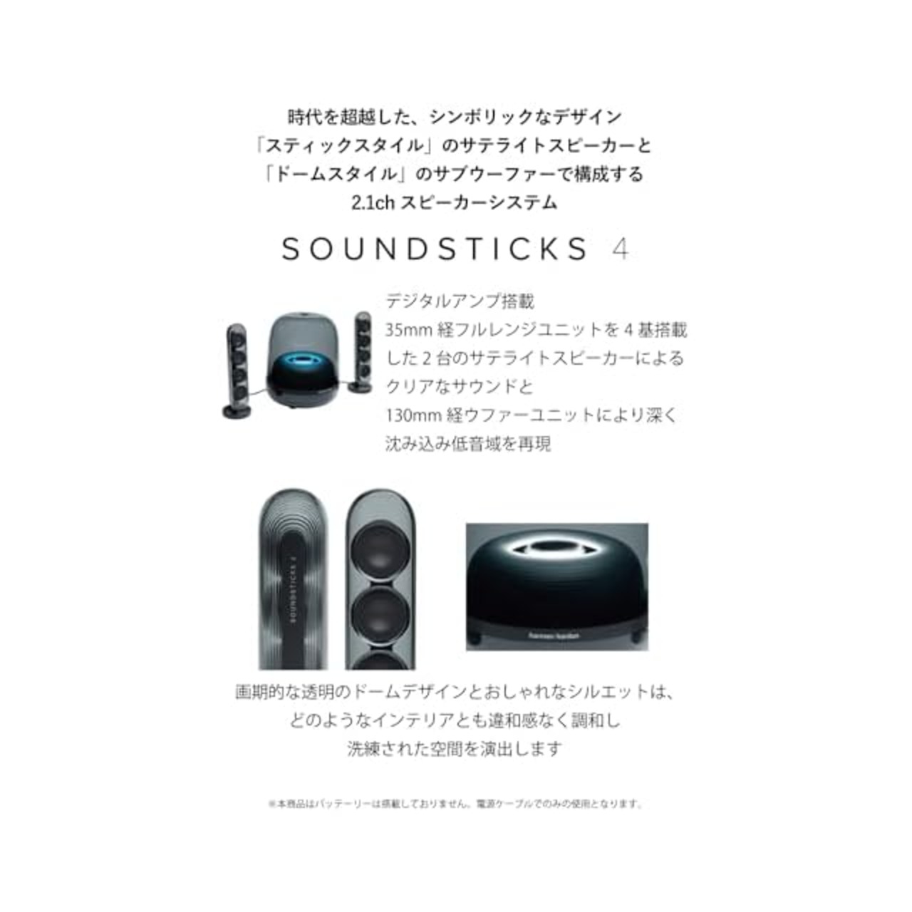 Harman Kardon SoundSticks 4 Wireless Bluetoothスピーカー/サブウファー搭載/電源ケーブル駆動 / 3.5mmアナログ入力搭載 / ブラック / HKSOUNDSTICK4BLKJN
