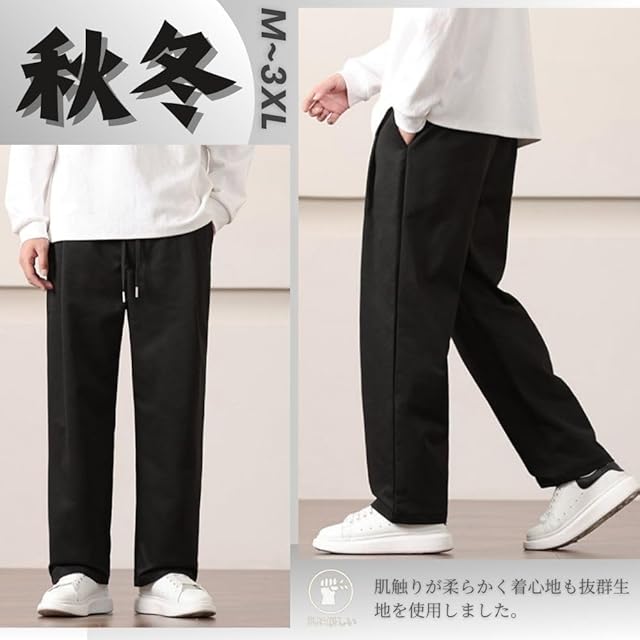 [GUTHONG] ズボン メンズ ワイドパンツ 秋冬 テーパードパンツ カジュアル イージーパンツ 大きいサイズ サルエルパンツ シンプル ゆったり ボトムス 無地 ストレートパンツ メンズ ロングパンツ 秋 冬 black L | primer