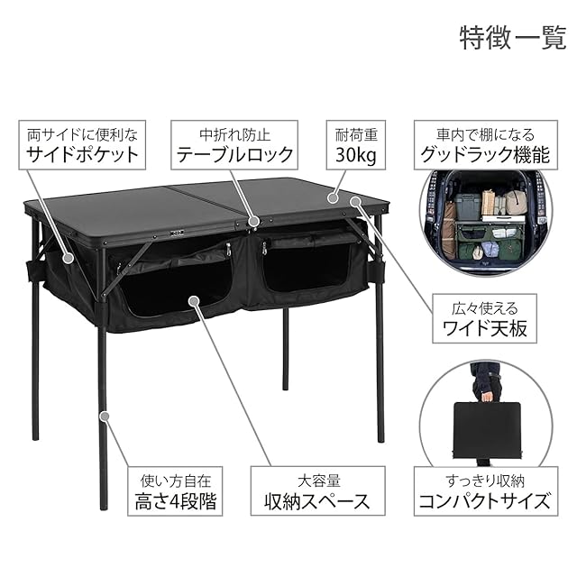 静止耐荷重:天板部分30kg、ストレージ部分5kg