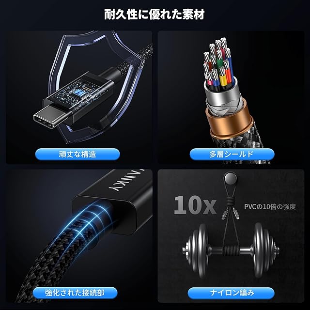 「プレミアムナイロンで柔軟性と耐久性を両立」独自の編みナイロンテクノロジーを採用し、頑丈さと柔軟性の理想的なバランスを実現。PVC素材と比べ、編みナイロンは破損や摩耗を軽減し、耐久性を向上させます。絡まりにくく、柔軟性としなやかさを保ちながら、スムーズな取り回しが可能です。