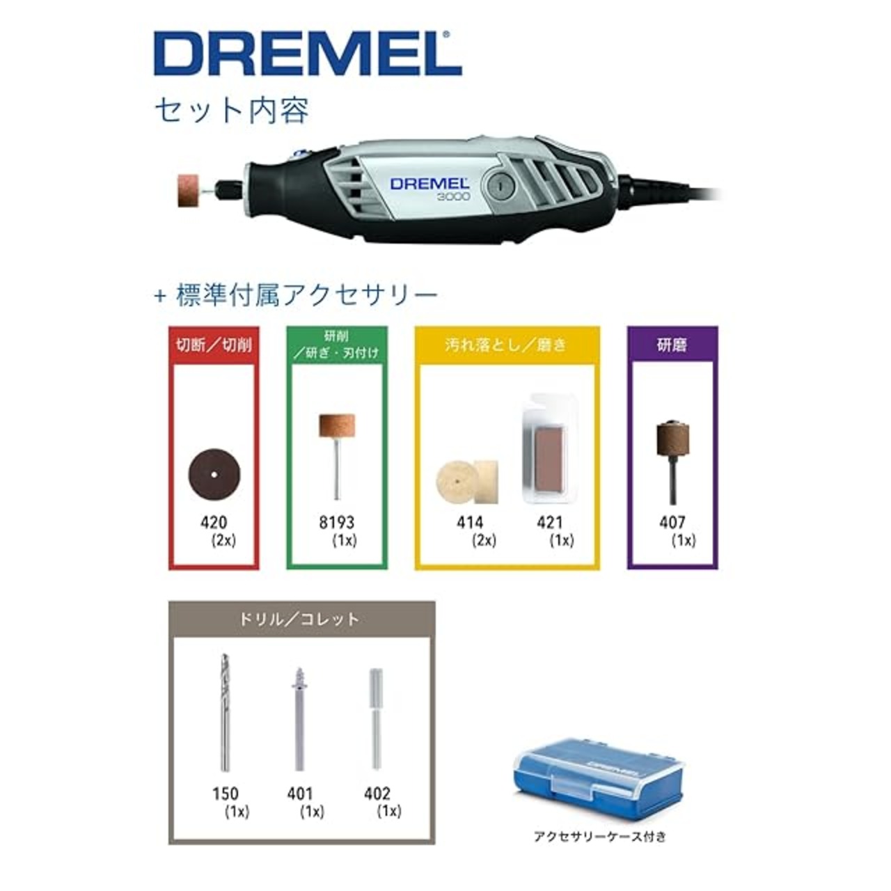 Dremel(ドレメル) ハイスピードロータリーツール(60Hz/90W)〔3000-N/10-60〕切削工具 8種10ピース入り 最大32,000回転/分 リューター 彫刻/削り出し/研磨/切断/切削/汚れ落とし/磨き/研削/研ぎ・刃付け | primer