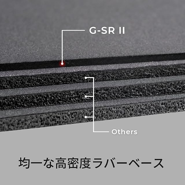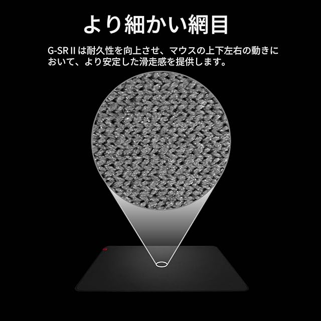 G-SR IIは、凹凸のない高密度ラバーベース仕上げのマウスパッドで、プレイヤーに快適な操作性を提供します。安定したコントロール性と制動力はそのまま、従来品より細かい網目でより安定感のある滑りと耐久性の向上を実現しました。吸湿性に優れた表面素材を採用することにより、湿度による滑りへの影響を軽減。ゲーミングマウスの性能を最大限に発揮できるゲーミングマウスパッドとなります。