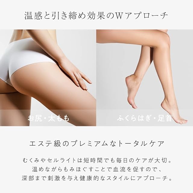 特に脚や太もも、足首、お尻など下半身ケアを目的とした専用設計で、気になる箇所を丁寧にケアできます。