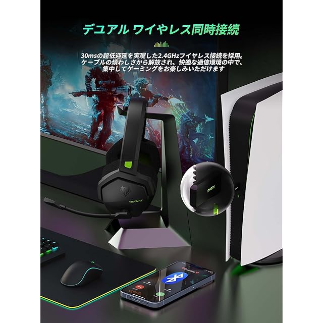 【高精度50mmドライバーユニット】高精度50mmドライバーユニットと2.4Gロスレスワイヤレス技術により、ハイレゾ音源のクリアで繊細なサウンドを実現します。 ゲームの世界中、細かい音まで聞き取りやすくなるので、敵の足音や爆発音などの方向を聞き分けて、ゲームの世界中に浸りと驚くほどリアルなサウンドを実現できる。 MOBA、FPS、RPG、Switch、荒野行動などに最適です。