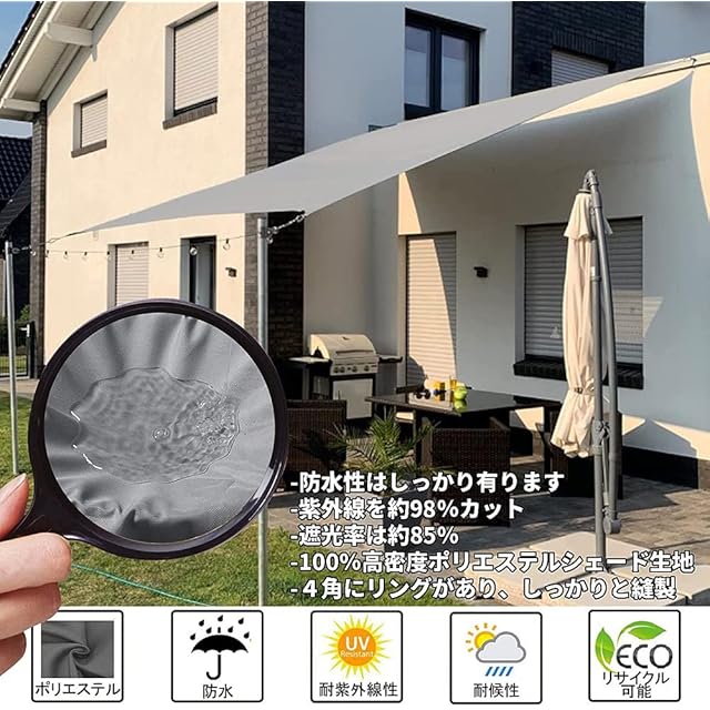 【抜群なUVカット】紫外線を約98%カットして、お客様を守ってくれます。UV加工済み、色褪せや紫外線劣化に強い糸の生地を使用。強烈な日光を遮られるだけでなく、室内や周辺の室温上昇を防ぎます!直射日光を遮ると同時に適度な風通しもあり、家の雰囲気が良くなっています 。