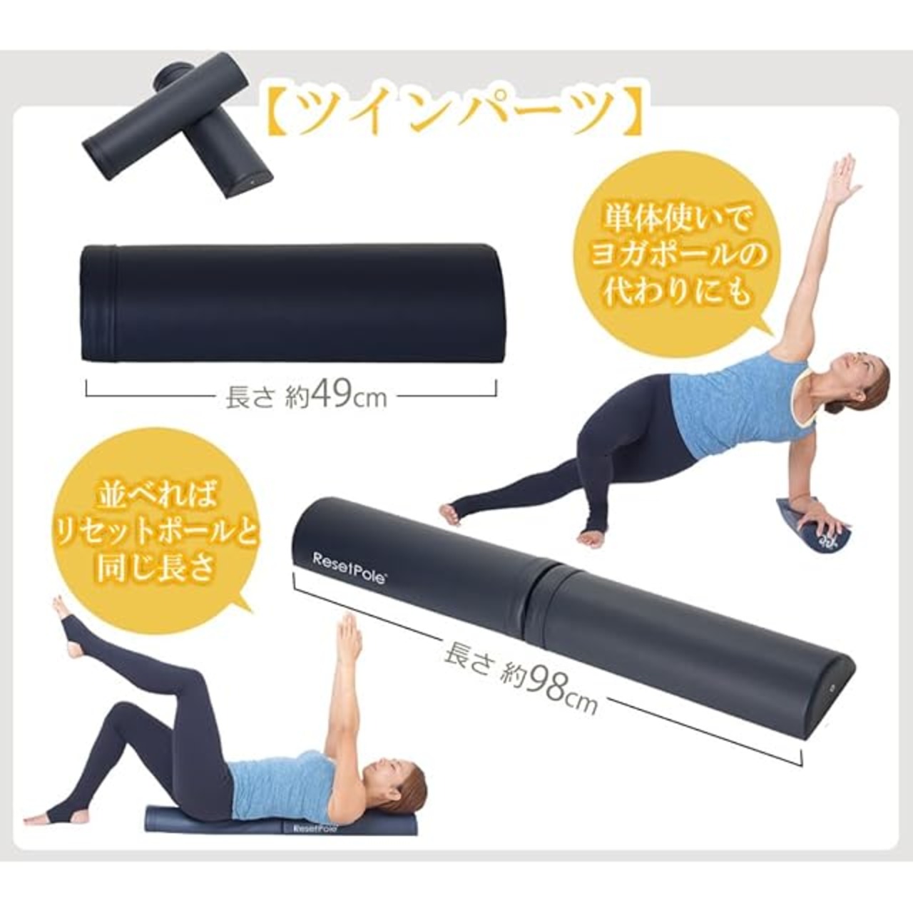 【コンパクト】長さ約49cm×2つセットだから収納にも困らないし、気になる箇所にサッと当ててストレットができるから便利。2つ縦に並べれば長さ98cmの通常のリセットポールのようにも使える。
