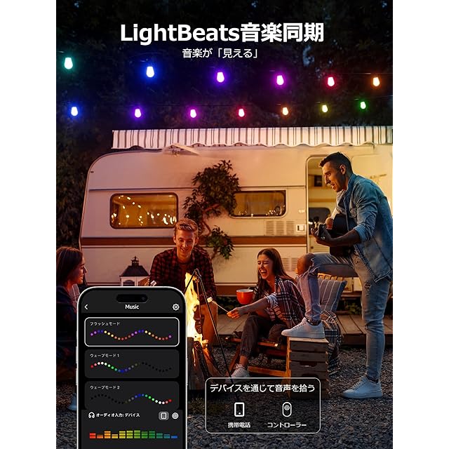 【電球色&RGB+APP調光調色・アレクサ音声対応】電球色とRGBカラー搭載で、アプリで操作できる様々な照明パターンもあり、お好みに合わせて雰囲気作りの照明として最適。アプリで無段階調光調色と自己生成できる豊かな点灯モードの切り替えもできます。雰囲気作りのキャンプ、ポーチ、デッキ、披露宴などのアウトドアにもAPPで遠隔操作ができて非常に便利です。さらに、AlexaやGoogleアシスタント音声コントロールにも対応。手が離せない時でも、声でON/OFFや調色/調光が可能です。