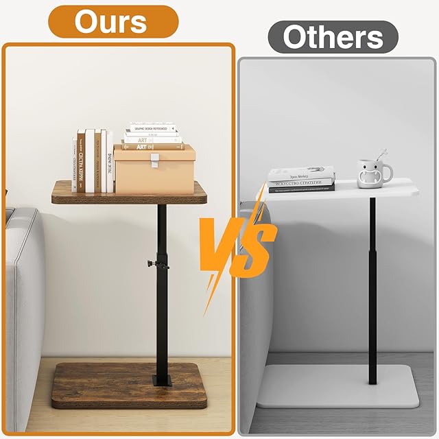 IBUYKE サイドテーブル C字型 昇降式 高さ調整 ベッドサイドテーブル ソファサイドテーブル コーヒーテーブル コンパクト 小型 ブラウン