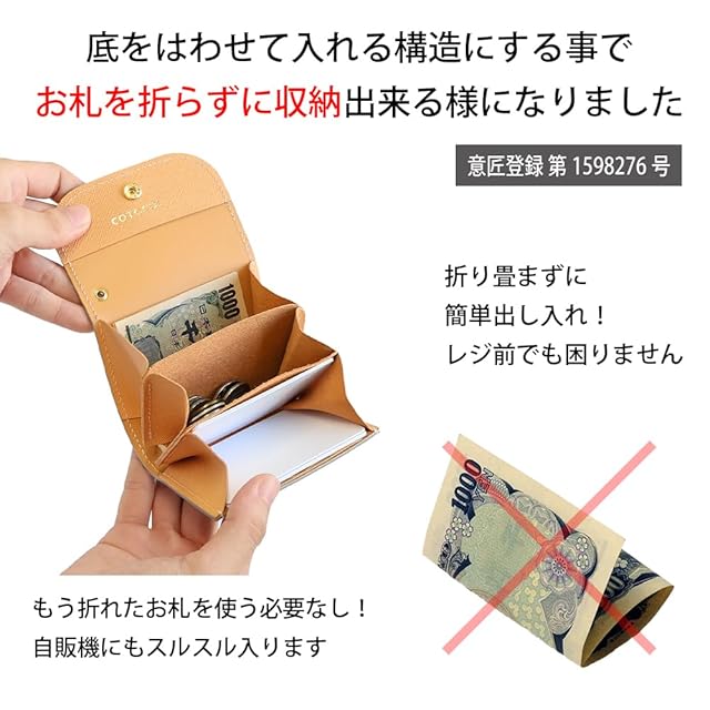 業界初の特殊構造(意匠登録済)でお札が折れずに収納出来ます。