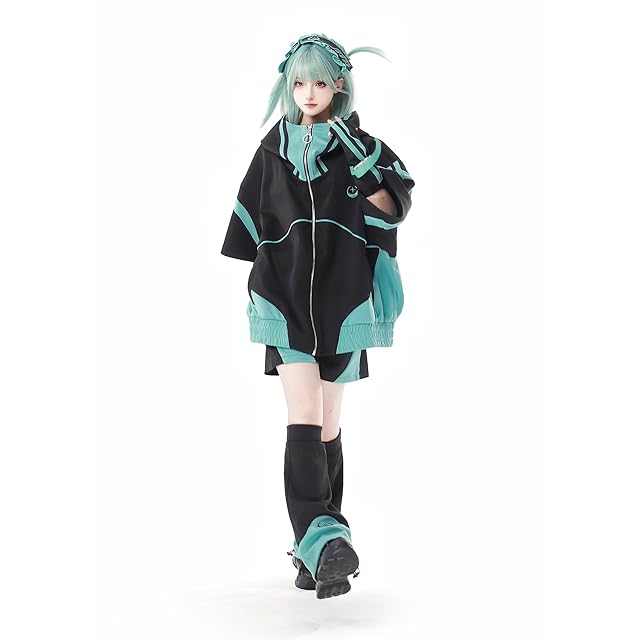 [XHSUKADO] 地雷系 パーカー 機能服 サブカル系 ジップアップ 刺繍 男女兼用 運動服 レディース 服 メンズ 半袖 Y2K コート アウター トップス サブカル地雷 ジャケット 薄手 春 秋 夏 ゆったり OverSize 大きいサイズ 立ち襟 黒 緑 ブラック+グリーン M [並行輸入品] | primer