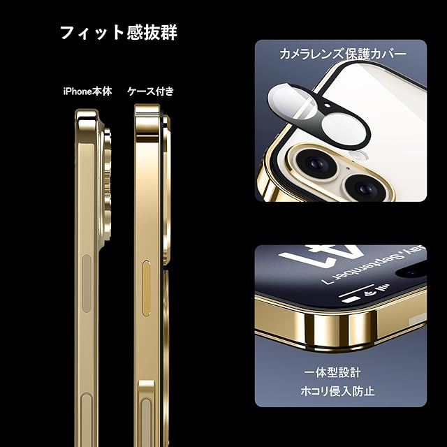 アルミバンパー・ロック機能:フレームは超軽量のアルミ製で、iPhone本体と同じ光沢を持ち、高級感を演出します。サイドボタンやレンズ周りのデザインも統一感を持たせ、使い心地と見た目の美しさを両立しました。前後カバーは嵌め込みデザイン、前後カバーを合わせてから、上部にあるロック機能は自動的にロック、スマホとケースの間に隙間がほとんどありません。これにより、スマートフォンがケースの中で動くことがなく、摩耗を防ぎます。また、上部のアクションボタンを押すだけで、ロックの解除できます。