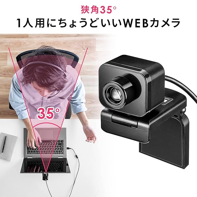 画角が35度の 狭角 WEBカメラ です。画角が広いカメラと比べて周りが映りすぎることなく、自分だけを映すことが可能です。