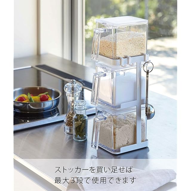 品質表示:ラック フレーム:スチール(粉体塗装)マット:シリコーン 調味料ストッカー 容器・スプーン・蓋・すり切り板:PS樹脂
