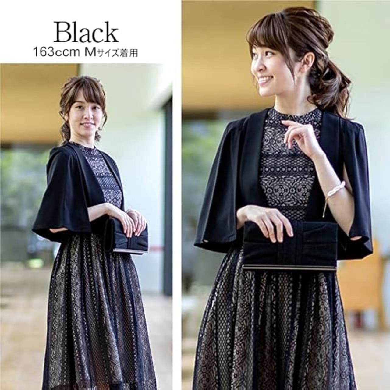[アウニイ] パーティー ボレロ ジャケット マント 袖口 フォーマル ジャレロ 羽織り 体型カバー レディース 結婚式 お呼ばれ 秋 冬 冷房対策 カーディガン ショート 丈 シンプル ケープ オールシーズン 20代 30代 40代 袖付き パーティードレス かわいい 七分袖 大人 黒 長袖 着痩せ 二の腕 カバー kan709 (ブラック M)