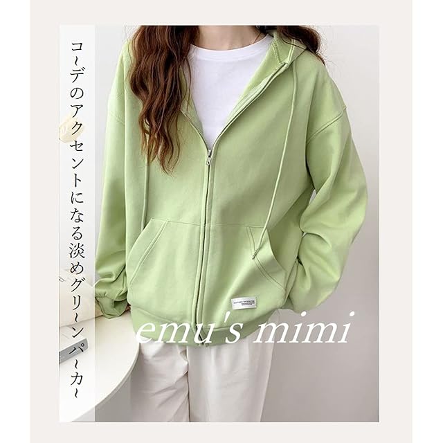 ラフな着心地のゆったりパーカーになります。 <br/>シンプルなパーカーもゆるっとしたシルエットでリラックス感もあり、お洒落な印象に。<br/>お色味は使いやすく合わせやすいグレーとホワイトの2色とアクセントとなるグリーンをご用意致しました。<br/>ポケット、フード付きで使いやすく、どんなコーディネート、シーンにも取り入れやすいアイテムとなります。 <br/>しっかりした生地感なので、秋冬はもちろん、まだ肌寒い春や秋、梅雨時期の羽織ものとしても活躍の一着に。<br/>ジップアップパーカーは日常使いしやすいアイテムで、お出かけやアウトドアにはもちろん、お部屋でのリラックスタイムに、ルームウェアやホームウェアとしてもお使い頂け、どんなお洋服にも合わせやすく10代、20代、30代、40代、50代、60代と幅広い年代の方に長く使って頂けるアイテムとなります。 <br/>ピーコートやコーデュロイアウターと合わせたり、ハイネックインナーと重ねてきたりと様々なコーディネートも楽しめます。<br/>コーディネートとしては、春、秋には羽織ものとして半袖tシャツやロンtにサラッと。<br/>冬は中にタートルネックやクルーネックtシャツなど入れて寒さ対策しながら、レイヤードスタイルも楽しんで頂けます。<br/> ボトムはスキニーデニム、Gパン、バギーパンツ、ワイドパンツやマキシパンツ、黒パンツ、ロング丈スカートやマキシスカート、ミニスカート、スウェットスカートなど合わせるとカジュアルな印象に。<br/>ストレートパンツ、タイトスカート、スリットスカートなどと合わせれば、キレイめカジュアルなスタイルにも仕上がります。<br/>上着にはトレンチコートやライダース、ジャケットなどと合わせるとかっちりとした中にも、パーカー独特のカジュアル感も出たおしゃれなコーディネートに仕上がります。<br/>Gジャンやピーコート、ノーカラーコート、チェスターコートなどフードがないタイプのアイテムと合わせれば大人カジュアルなスタイルを楽しんでいただけます。<br/>【サイズ】<br/> 着丈/胸囲/肩幅/袖丈<br/> M 63㎝/114㎝/53㎝/54㎝<br/> L 63.5㎝/120㎝/54㎝/55㎝ <br/>XL 65㎝/124㎝/56㎝/57㎝ <br/>※採寸は平置きとなり、多少の誤差がある場合がございますので、予めご了承くださいませ <br/>【洗濯について】色移りする場合がございますので、他のお洗濯とは別にして、ぬるま湯での手洗いをおすすめいたします<br/>