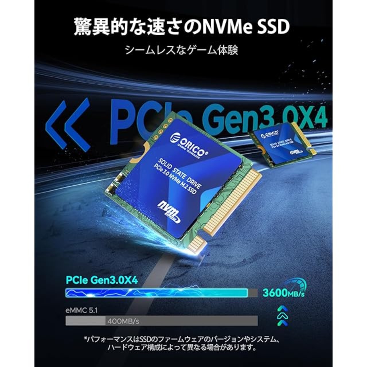 【柔軟な容量オプション】: ORICO M.2 NVMe SSDは、256GBから1TBまでの幅広いストレージ容量を提供し、多様なニーズに対応します。ハンドヘルドコンソール、超薄型ノートパソコン、ミニPCのアップグレードに最適な信頼性のあるストレージ拡張ソリューションです。
