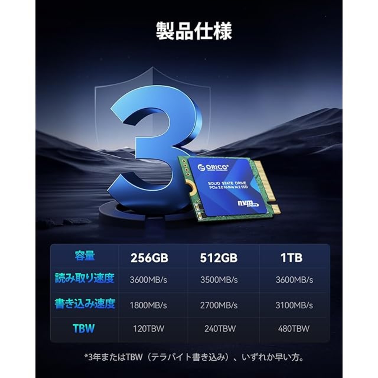 ORICO 256GB 2230 M.2 2230 内蔵 SSD 3D TLC NAND搭載 PCIe Gen3×4 最大読込:3600MB/s (R:3600MB/s、W:1800MB/s) メーカー 3年保証 J10-2230