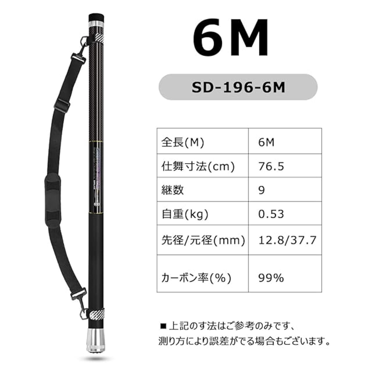 サンライク(SANLIKE) タモの柄 たものえ 玉の柄 99% カーボン ランディングポール 小継 伸縮 玉の柄 たまの柄 たもの柄 全魚種対応 ショルダーベルト付き コンパクト 軽量 携帯便利 海水淡水両用 6m 600