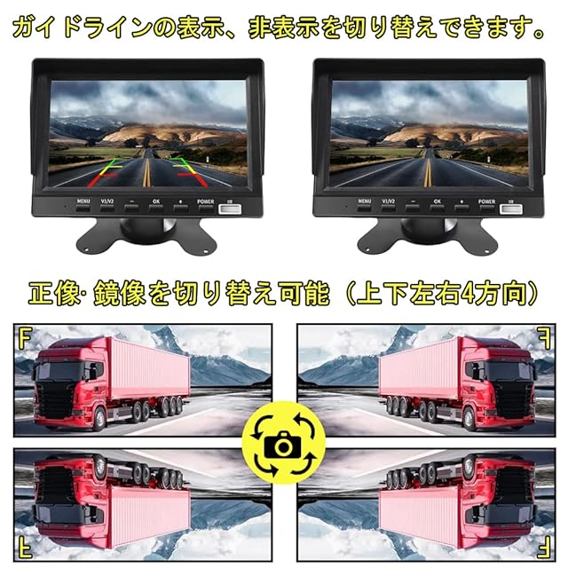 ulopop [2025年新型] 7インチドラック用ドライブレコーダー、IPS液晶、4K画質 4画面分割オンダッシュモニター 録画機能付き、 ガイドラインON/OFF 正像・鏡像を切替可能,駐車監視機能付き、12-36V兼用 4個カメラ付きセット、日本語説明書つき | primer