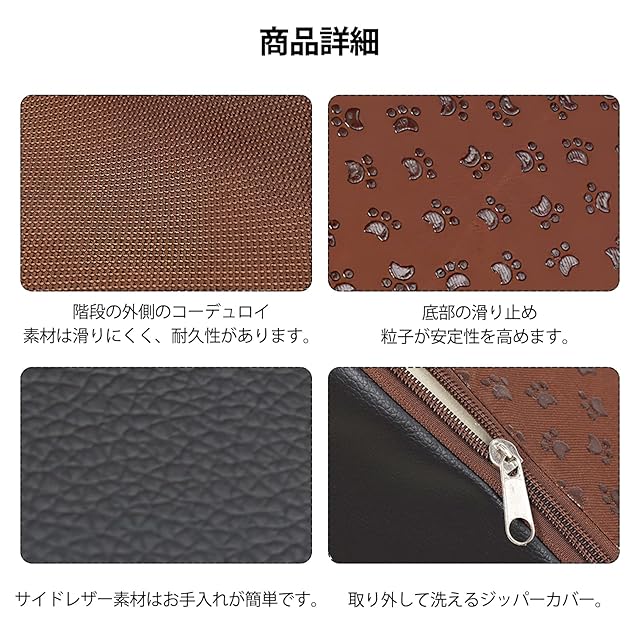 プレミアム材料:ペットの階段の内部は、強力なサポートを備えた高支援スポンジで構成されています。 ペットの階段は変形するのは容易ではなく、耐久性があります。 ペットの階段の外層は綿材料です。ペット用階段はお手入れが簡単で、直接分解して洗うことができるため。