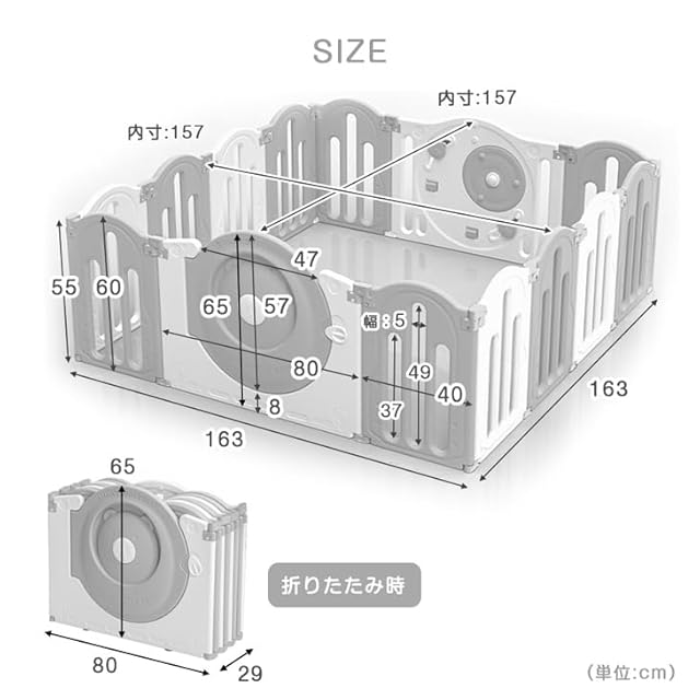 【サイズ】外寸:幅163×奥行163×高さ65cm 内寸:幅157×奥行157cm (正方形の場合) 折りたたみ時:幅80×奥行29×高さ65cm