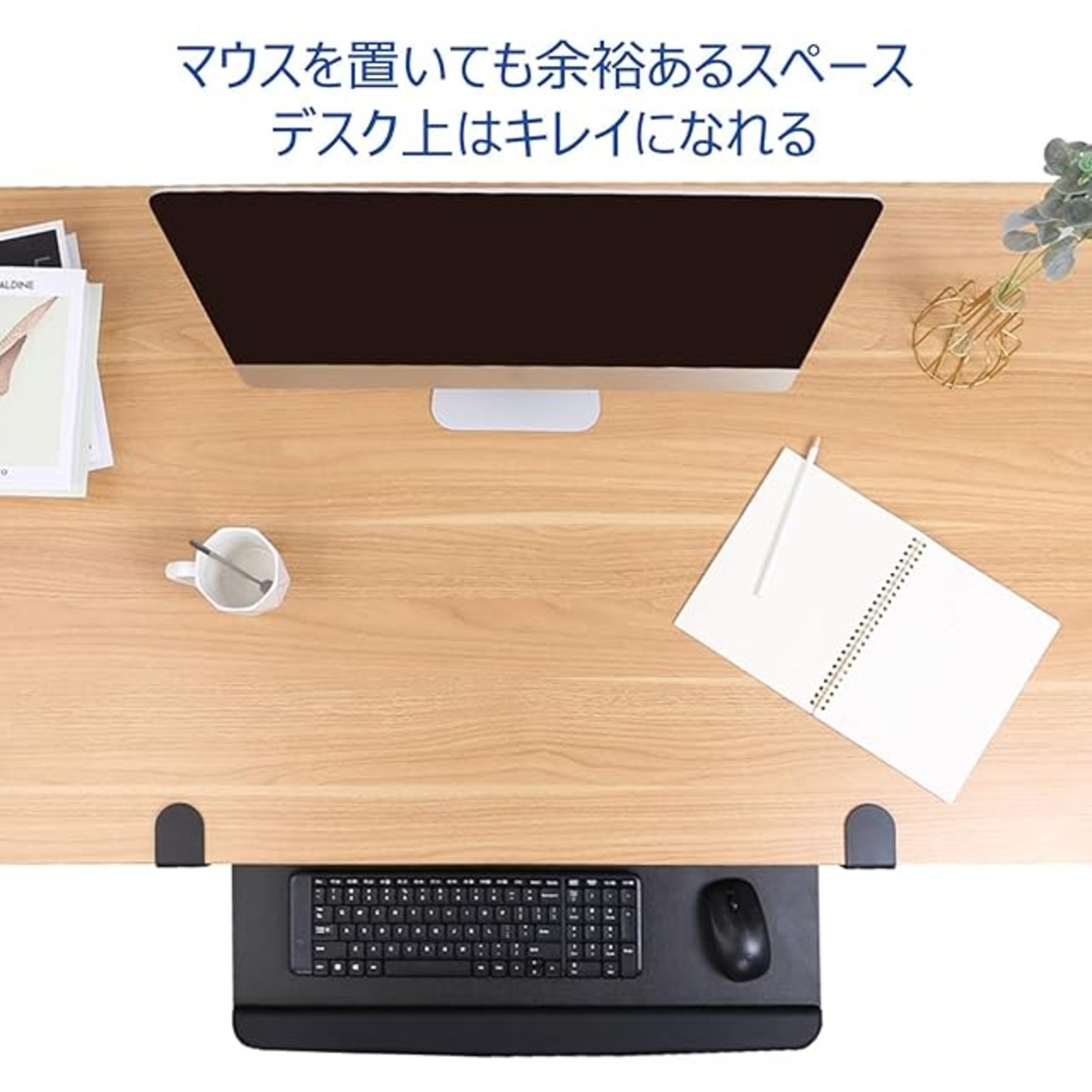 キーボード台:幅635mm(クランプを含めておりません)*奥行き305mm;対応する天板の幅>795mm(クランプを含めております);対応する天板の厚さ:1.5-5cm;キーボードとマウス併用可能;耐荷重7KGまで。