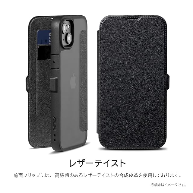 【RAPTIC】 iPhone15 対応 ケース 手帳型/カード 収納/耐衝撃 米軍 MIL 規格 クリア 合成皮 革 素材 背面 透明 マグネット 式 スマホケース [ Apple iPhone 15 携帯ケース ] Urban Folio ブラック | primer