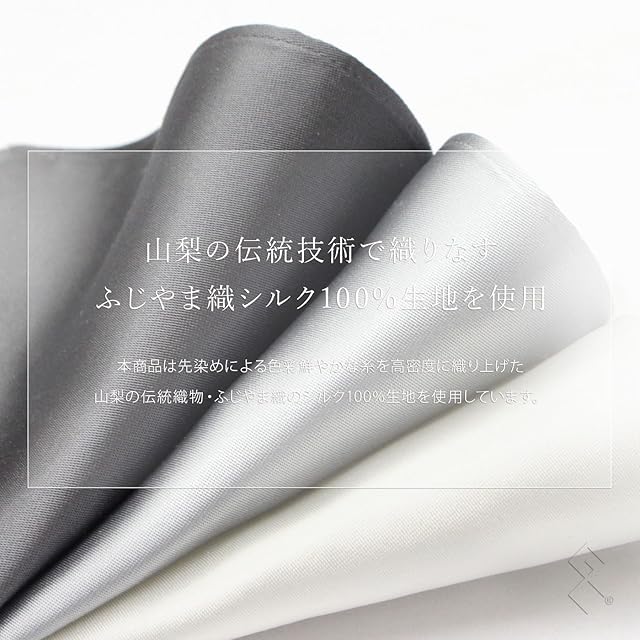 ネクタイの生地で織られたチーフと、蝶ネクタイはしっかりした厚みがあり、小物ながらも付けた際の存在感は抜群です。高級なシルクの光沢が上品で、アジャスター付き蝶ネクタイでサイズ調節も簡単。日本製の縫製のよさも併せてお楽しみください。