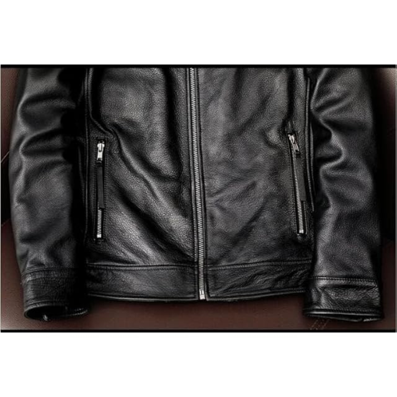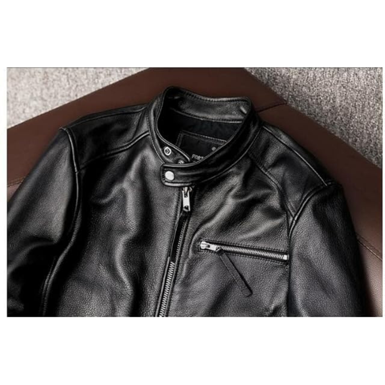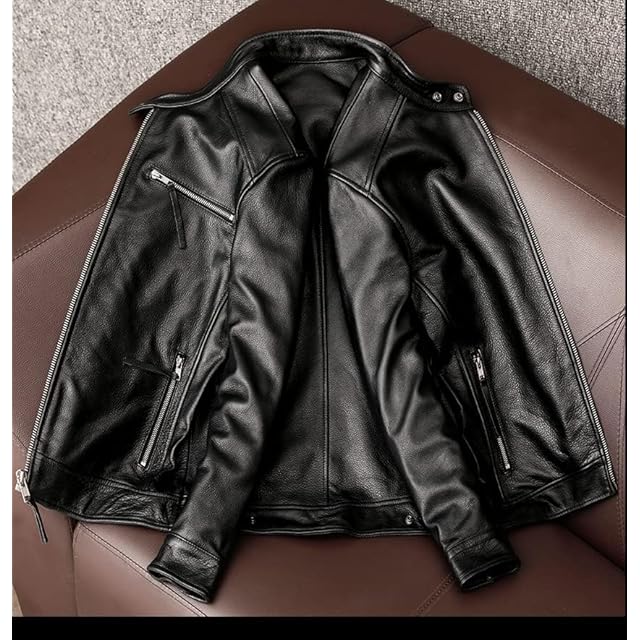 [CHEJI] 本革ジャケット レザージャケット 牛革コート メンズジャケット ダブル ミリタリージャケット ライダースジャケット レザー 牛革コート革ジャケット ショート バイク シンプル 防寒防風 厚手 春秋冬 MA-1 Gジャン ファッション (XL)