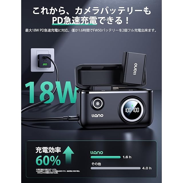 【日本初!カメラバッテリーの充電を再定義!】llanoは実用性と見た目から考えており、カメラバッテリー充電に必要な機能が揃え、オシャレなminiカメラのデザインを実現し、従来のバッテリー充電器とはまったく違う、革新的なカメラバッテリー充電器が誕生しました!NP-FW50充電器として、今年11月11日大規模なセールには、中国の大手ECサイトジンドンのカメラバッテリー充電器カテゴリーで売上No1を達成し、日本でも販売開始。カメラユーザーへ最新の充電体験をお届けしています♪注:バッテリーは含まれていません。