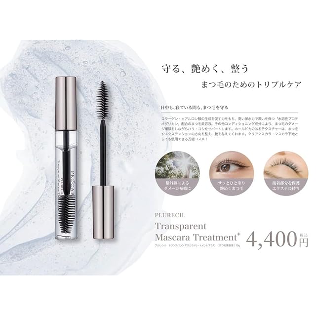プロケアアイラッシュのプルレシル トランスパレンマスカラ トリートメント プラス 「守る」「艶めく」「整う」のトリプル効果! コンディショニング成分が配合された美容液で、まつ毛とエクステンションに艶を与え、表面と結合部分を保護することでまつエクの持続力をアップさせます。ばらつきが気になるまつ毛エクステの方向を整える事もできます。 ■コンディショニング成分■ 保湿効果:プロテオグリカン、パンテノール、加水分解シルク キューティクル保護:8つのミネラルエキス(アスコフィルムノドスム、ヒバマタ、ヒジキ 、トロロコンブ、レソニアニグレスセンス、ミツイシコンブ、リシリコンブ、ワカメエキス) [全成分]水、BG、エタノール、水溶性プロテオグリカン、パンテノール、加水分解シルク、TEA、カルボマー、PVP、アスコフィルムノドムス、ヒバマタ、ヒジキ 、トロロコンブ、レソニアニグレスセンス、ミツイシコンブ、リシリコンブ、ワカメエキス、ユズ果実エキス、フェノキシエタノール、メチルパラベン 内容量:10g [型番:GO-PLM003-1]
