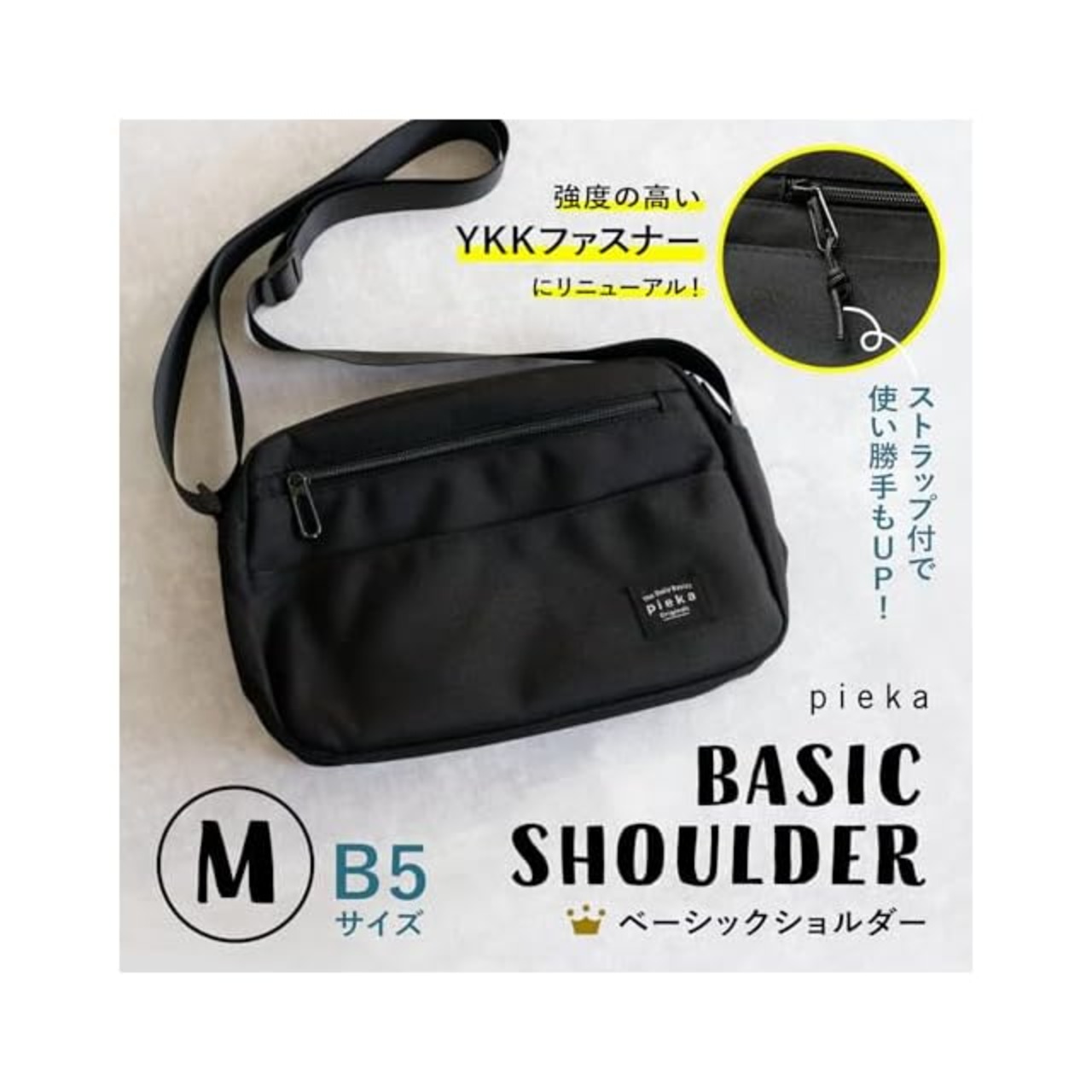 [pieka] ショルダーバッグ メンズ 軽量 斜めがけ 5ポケット Mサイズ(ブラック)