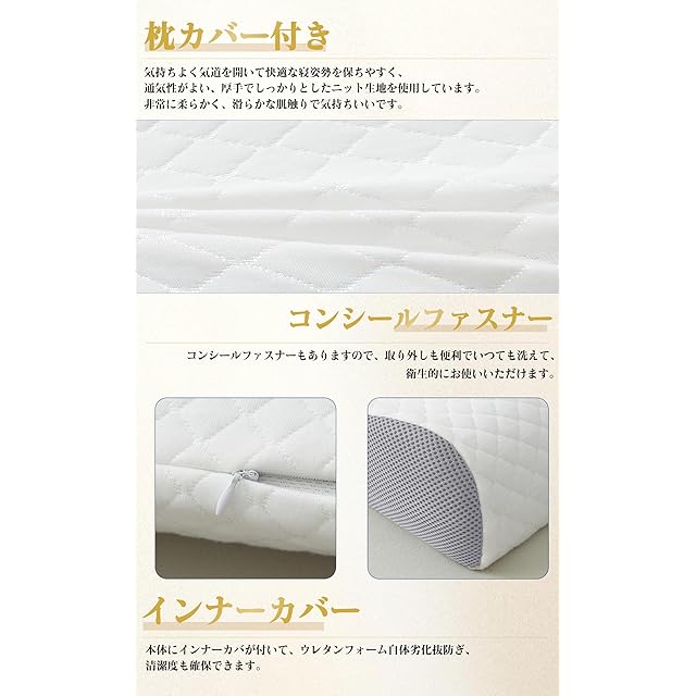 【通気性と速乾性の枕カバー】: 枕カバーは100%ポリエステルを使用するため、優れた通気性を持っています。睡眠中に生成された水分を吸収し、寝汗をかいても快適です。毛玉にりにくい、シワになりにくい。洗った後は素早く乾かすことができます。ファスナー付カバーは洗濯や乾燥でき、インナーカバーとの2重保護で清潔さを保つことができます。(ご注意!:枕本体ウレタンフォームは洗濯できません。枕カバーは洗濯前に、洗濯ネットに入てください。)