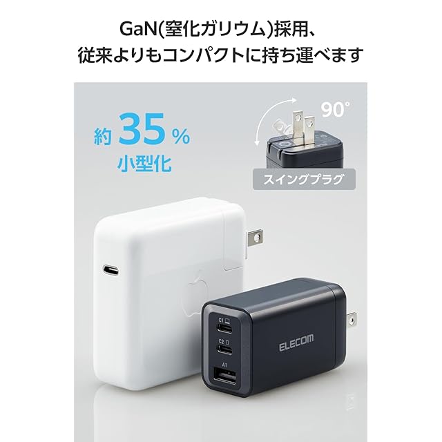 エレコム USB PD 充電器 65W 3ポート Type-C USB-A GaN採用 PPS対応 3台同時充電 折りたたみ式プラグ PSE技術基準適合 [iPhone 16 15 iPad Macbook パソコンなど対応] ブラック EC-AC6465BK | primer