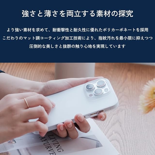 【薄くて、強い】ポリカーボネートを採用し、硬さがあるので従来のTHE FROST AIRケースより丈夫。薄くて強い、さらに本体の美しさを体現できる。
