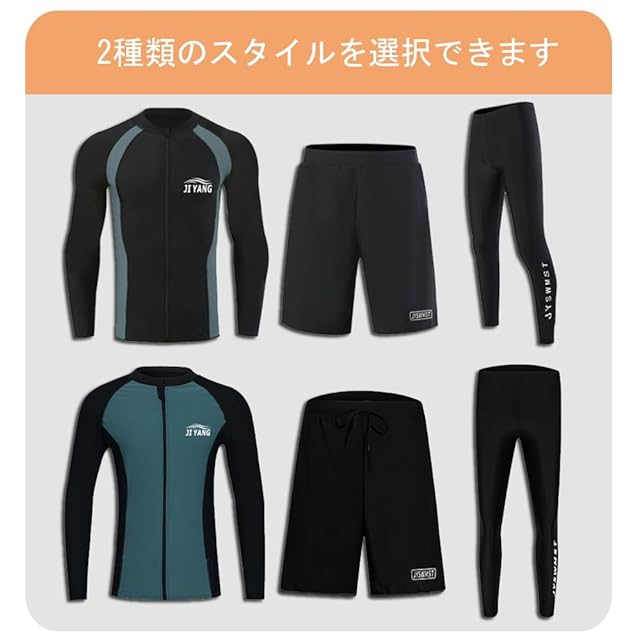 [Ghankga] 水着 メンズ ラッシュガード 男性 3点セット フィットネス 大きいサイズ サーフパンツ UVカット 水陸両用 吸汗 速乾 通気性 柔らかい 肌触り 温泉 競泳 ビーチ 水泳 スイミング #002-3XL