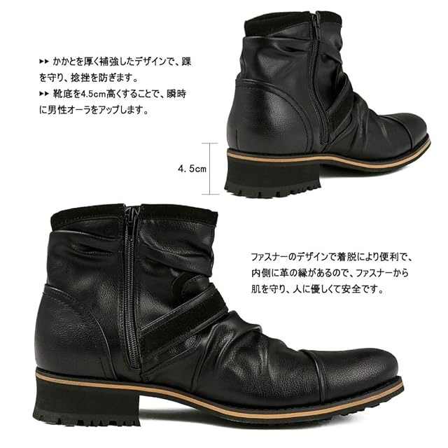 4.シーズン問わず使えるブーツなので、1足は持っておきたい必須アイテムです。革のような質感はどんなボトムスとも相性抜群。ワークブーツ、カジュアルブーツ、男性用、バイク、作業、ウォーキング、アウトドア、秋冬靴、ハイキングなどの場合まで、どんな服との組み合わせは簡単です。