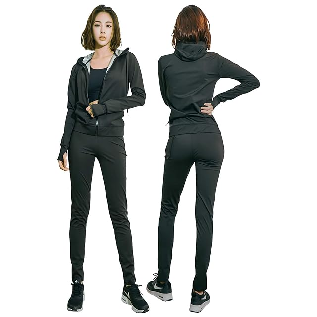 [NANE] サウナスーツ レディース【人気 芸能人が愛用 最強減量 発汗力 6 倍 】 ウインドブレーカー ダイエット トレーニングウェア ストレッチ おしゃれ スポーツウェア 上下セット 洗濯可 フード付き (ブラック,XL) | primer